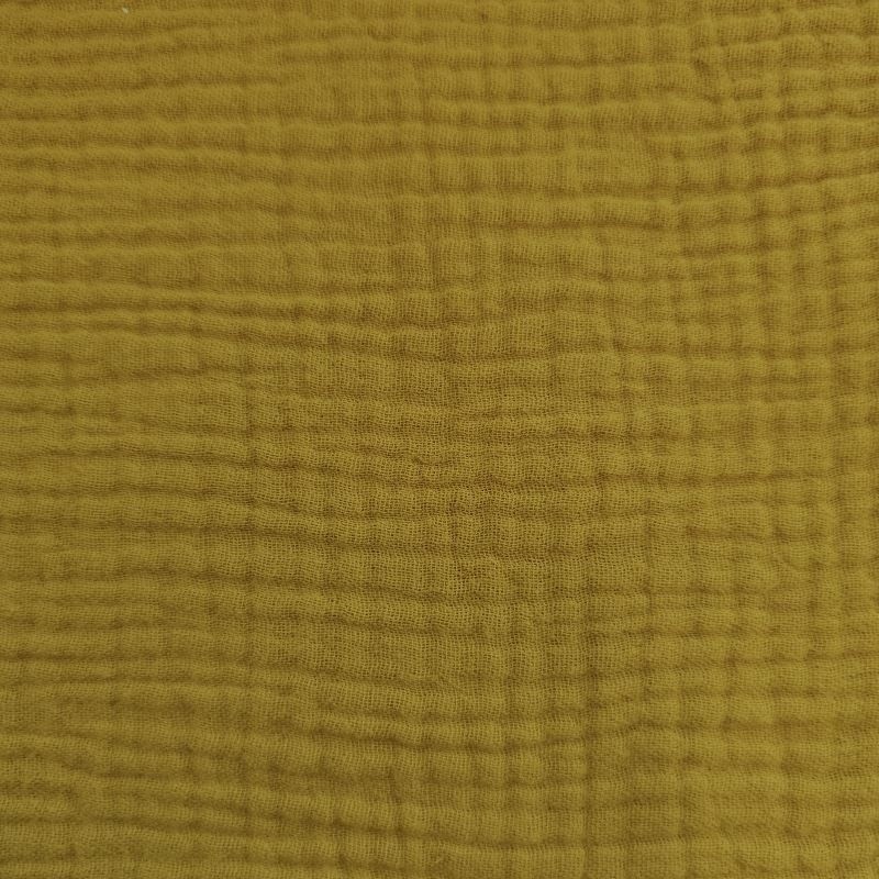 La double gaze unie FRIPOUILLE coloris moutarde est très appréciée pour la confection de vêtements, d'accessoires pour bébé ou encore de plaid déco. Ce tissu 100% coton est léger, fluide avec un aspect froissé.