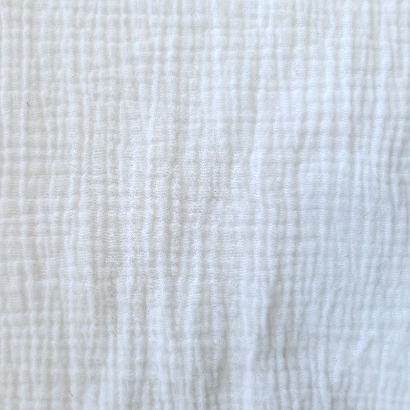 La double gaze unie FRIPOUILLE coloris blanc est très appréciée pour la confection de vêtements, d'accessoires pour bébé ou encore de plaid déco. Ce tissu 100% coton est léger, fluide avec un aspect froissé.