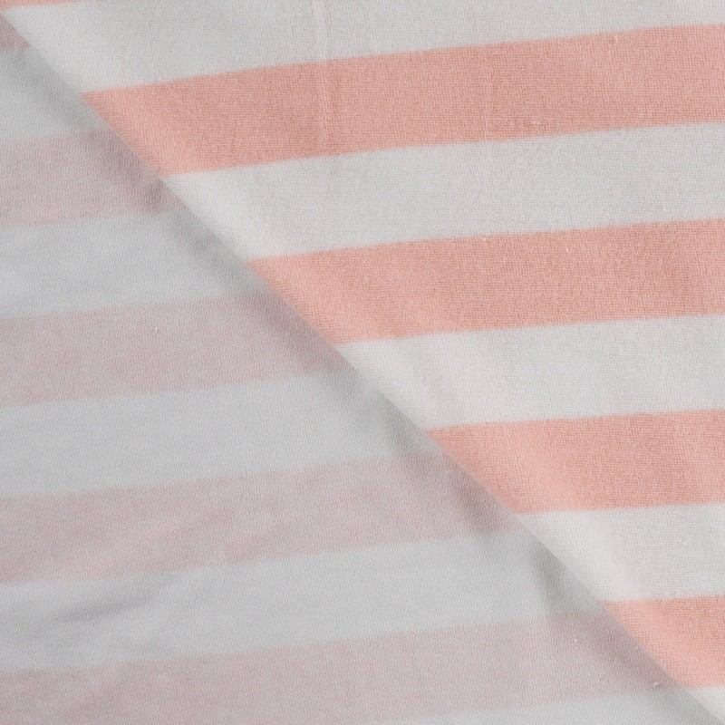 Alliez confort et style avec le tissu PicoTerry rayé rose poudré. Ce tissu doux et respirant séduit par sa texture bouclette subtile et ses nombreux coloris. Son aspect légèrement texturé sublime les teintes en leur apportant du relief et du caractère.