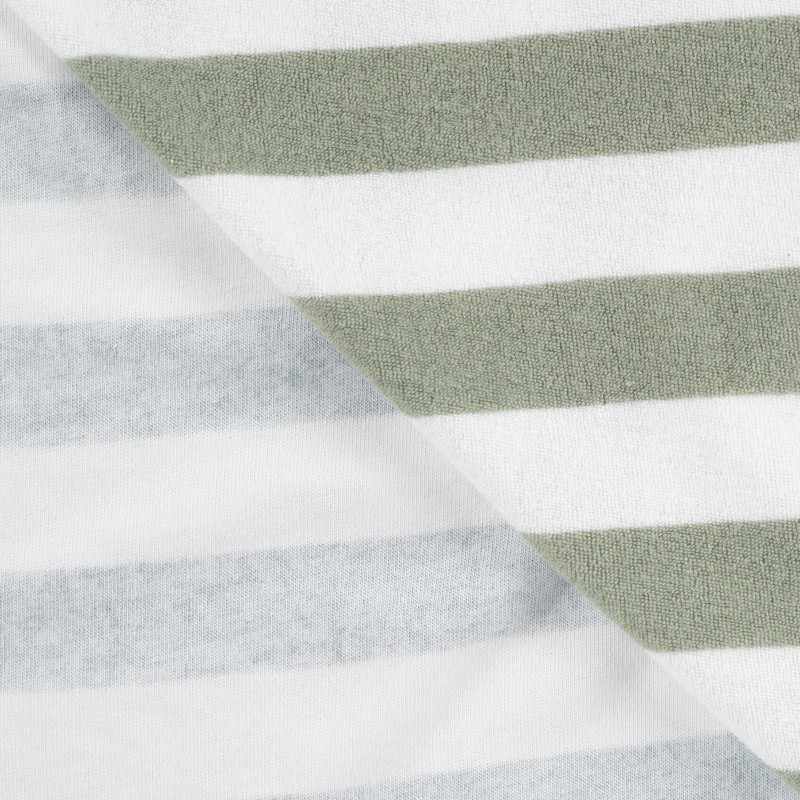Alliez confort et style avec le tissu PicoTerry rayé kaki. Ce tissu doux et respirant séduit par sa texture bouclette subtile et ses nombreux coloris. Son aspect légèrement texturé sublime les teintes en leur apportant du relief et du caractère.