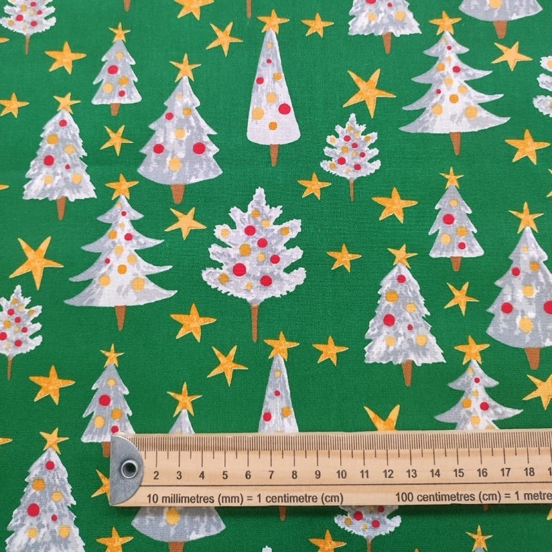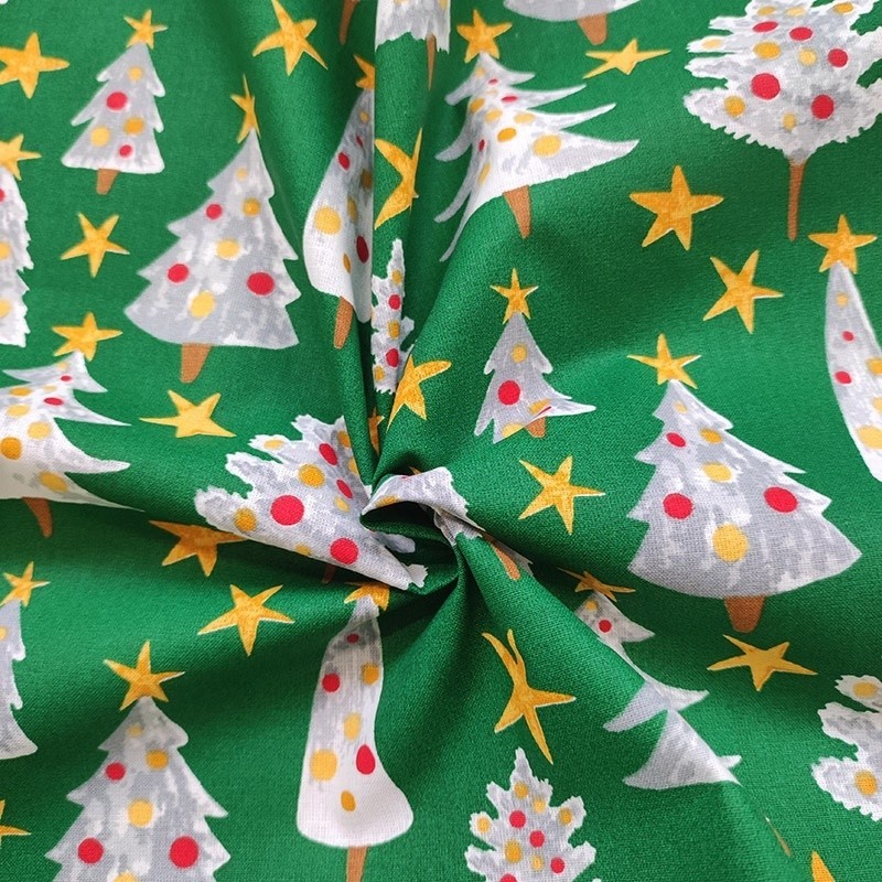 Le tissu Solveig, 100% coton, orné d’un motif sapin sur fond vert, apportera une touche festive et originale à votre décoration. Idéal pour réaliser une nappe, un calendrier de l’Avent ou un chemin de table, ce tissu imprimé s’adapte à toutes vos créations.