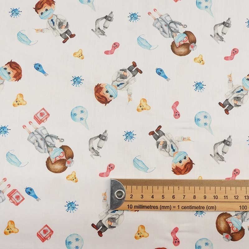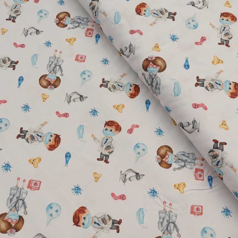 Ce tissu 100% coton imprimé numérique Infirmier conviendra aussi bien pour vos projets d'habillement que pour la confection d'accessoires comme des sacs, tote bags, coussin etc.