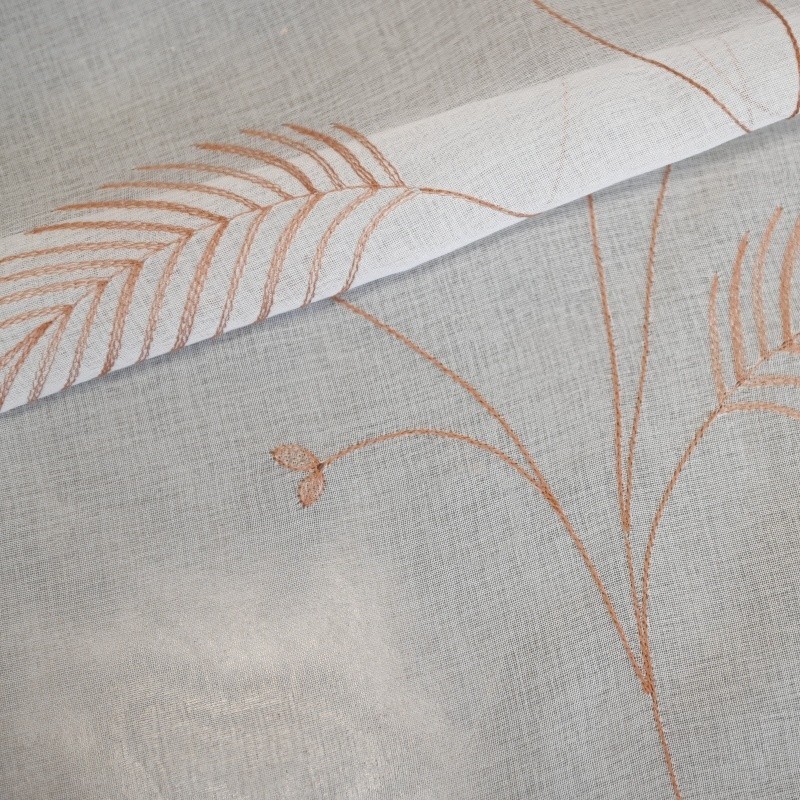 Cette jolie étamine terracotta Idia est brodée d'un motif feuille, elle habillera vos fenêtres avec élégance.