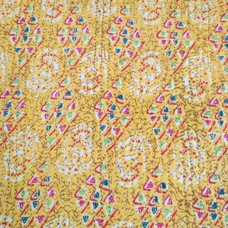 Découvrez ce tissu blockprint matelassé 100% coton double face, orné d'un magnifique motif végétal et floral vert et jaune. Les motifs sont imprimés à la main avec des tampons.Ce matelassé apporte de l'authenticité et de l'élégance à vos projets de couture décoration intérieure, ou créations vestimentaires...