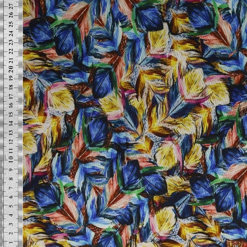 Tissu Popeline de Viscose Imprimée Motif Plume Multicolore