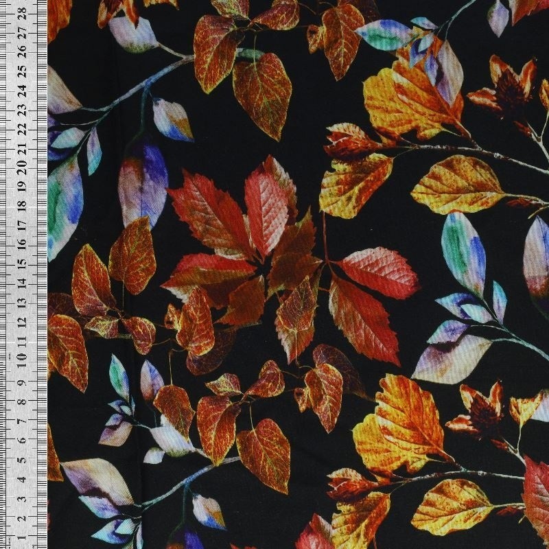 Tissu Popeline de Viscose Imprimée Feuille Multicolore