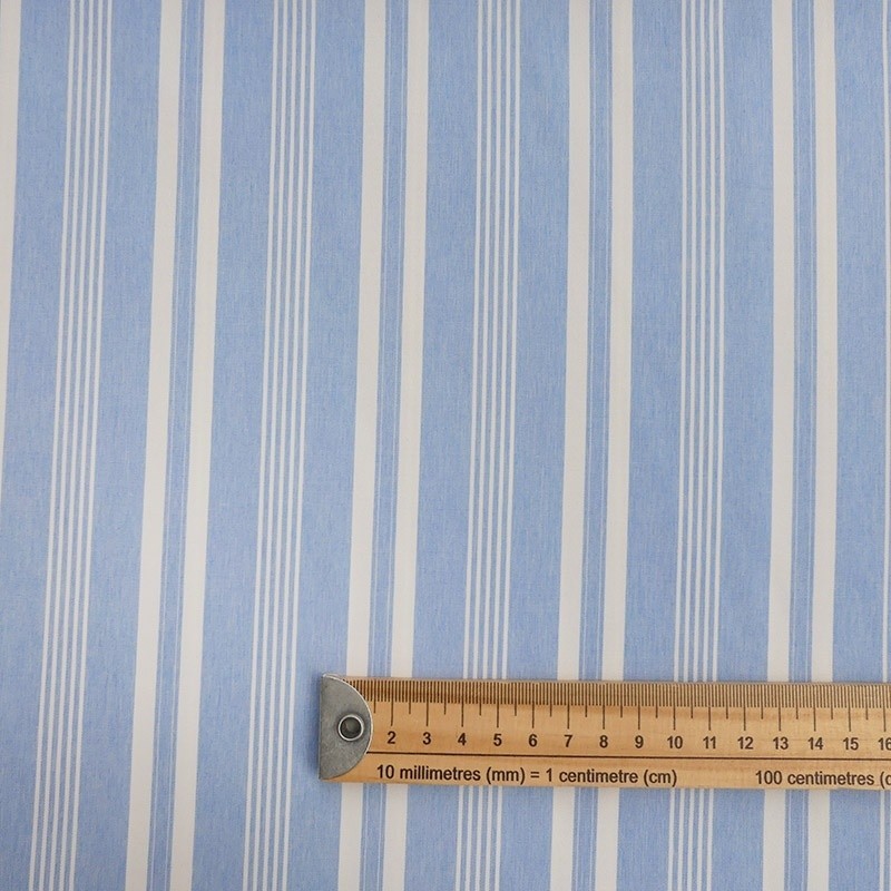 Ce tissu chemise rayé bleu allie la douceur du coton et la résistance du polyester, offrant un toucher agréable et une tenue facile d’entretien. Sa texture fluide et légère le rend idéal pour une large gamme de créations : chemises, blouses, robes, petits accessoires...