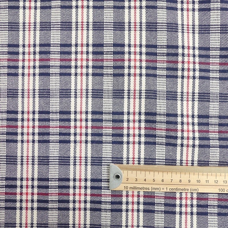 Ce tissu à carreaux bleu et rouge allie la douceur du coton et la résistance du polyester, offrant un toucher agréable et une tenue facile d’entretien. Sa texture fluide et légère le rend idéal pour une large gamme de créations : chemises, blouses, robes, petits accessoires...