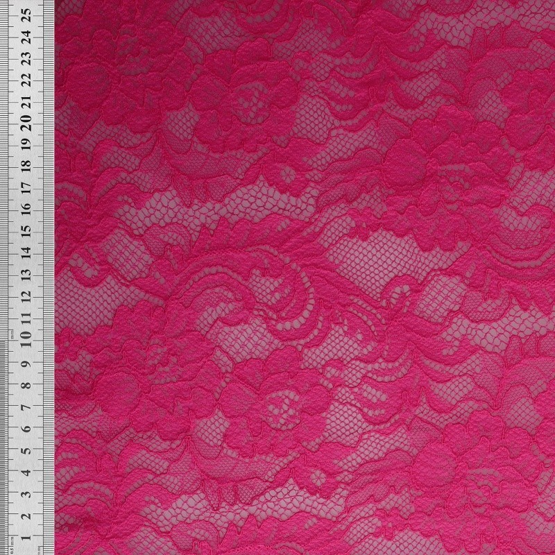 Tissu Dentelle Elastique Roses Fuchsia