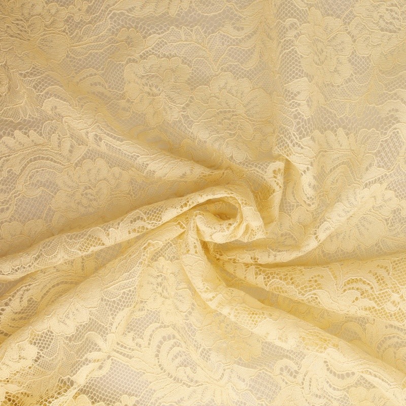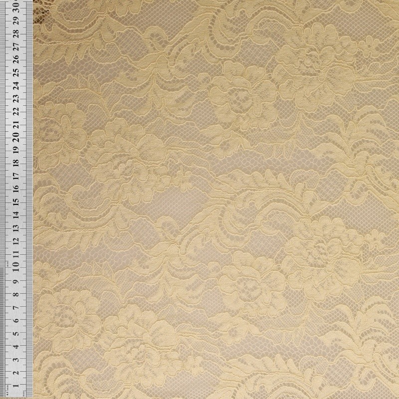 Tissu Dentelle Elastique Roses Ecru Foncé