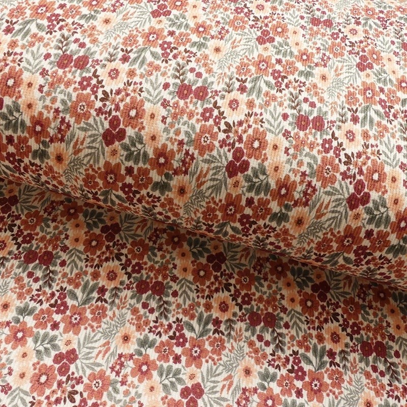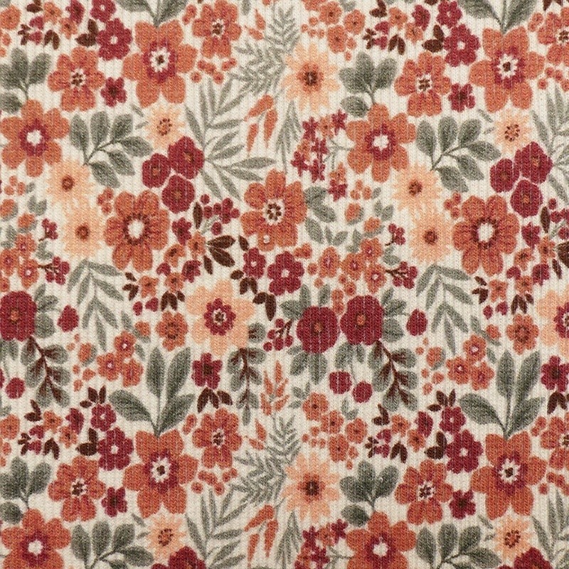 A la fois confortable et extensible le jersey côtelé fleurs conviendra pour toutes vos confections de vêtements comme des tee-shirts.
