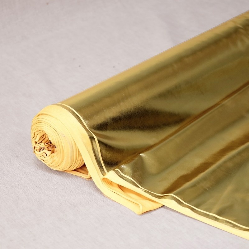 Découvrez notre tissu lamé enduit or. Ce tissu se distingue par son brillant subtil et sa texture souple, idéale pour des créations alliant style et caractère. Parfait pour la mode, les accessoires, la décoration ou encore des projets événementiels, ce tissu apporte une touche lumineuse et contemporaine à toutes vos réalisations : vestes, jupes, pochettes, coussins décoratifs, éléments scéniques, etc.
