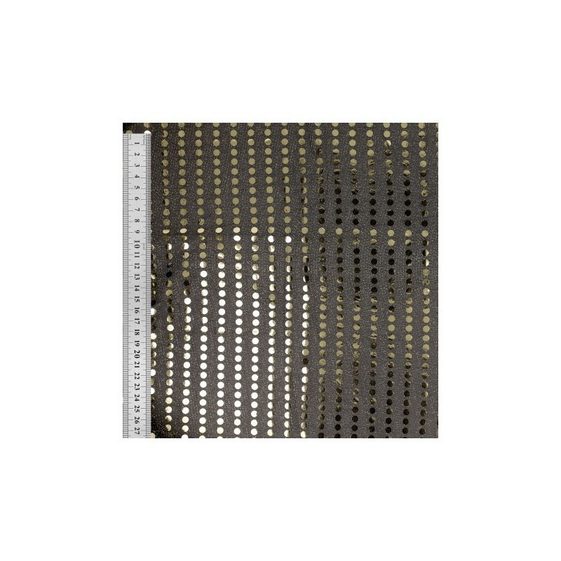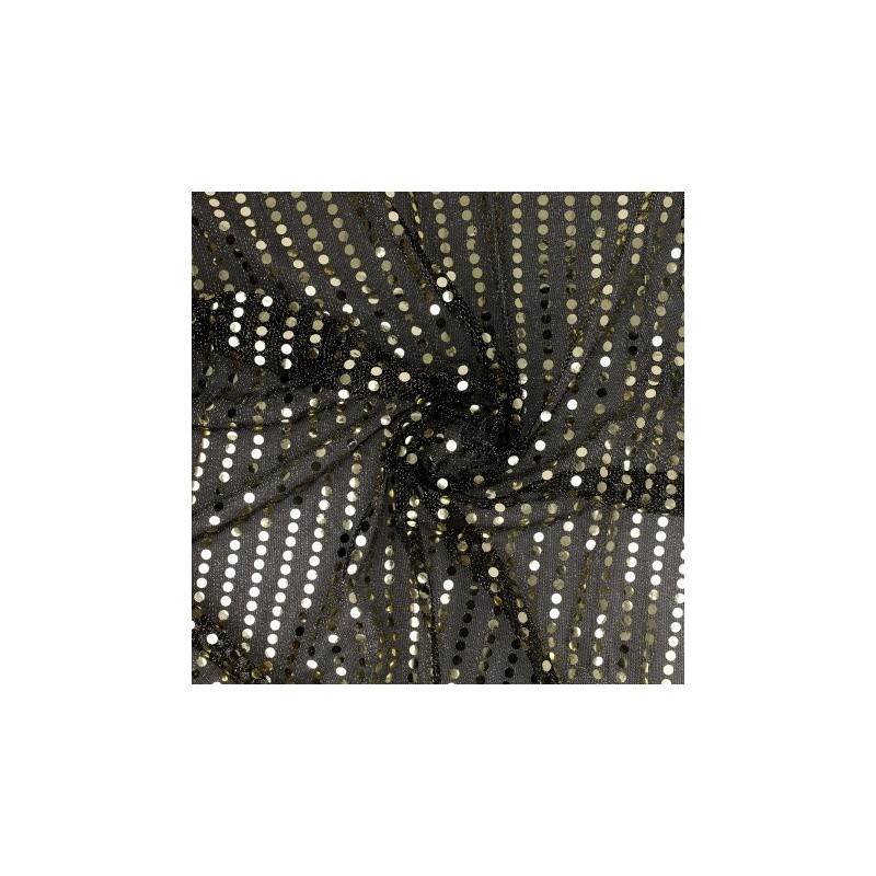 Offrez à vos créations une allure éclatante avec notre tissu paillettes sur voile noir. Conçu sur un voile scintillant argent, ce tissu est entièrement rehaussé de paillettes parfaitement assorties à la couleur du support, créant un rendu harmonieux, homogène et irrésistiblement brillant. La combinaison du voile léger, au mouvement fluide, et des paillettes dorées ton sur ton est idéale pour sublimer la lumière. Parfait pour la réalisation de robes de soirée, tenues événementielles, costumes artistiques, accessoires glamour ou éléments décoratifs haut de gamme.