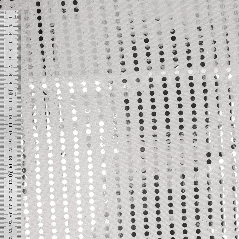 Offrez à vos créations une allure éclatante avec notre tissu paillettes sur voile argent. Conçu sur un voile scintillant argent, ce tissu est entièrement rehaussé de paillettes parfaitement assorties à la couleur du support, créant un rendu harmonieux, homogène et irrésistiblement brillant. La combinaison du voile léger, au mouvement fluide, et des paillettes argentées ton sur ton est idéale pour sublimer la lumière. Parfait pour la réalisation de robes de soirée, tenues événementielles, costumes artistiques, accessoires glamour ou éléments décoratifs haut de gamme.