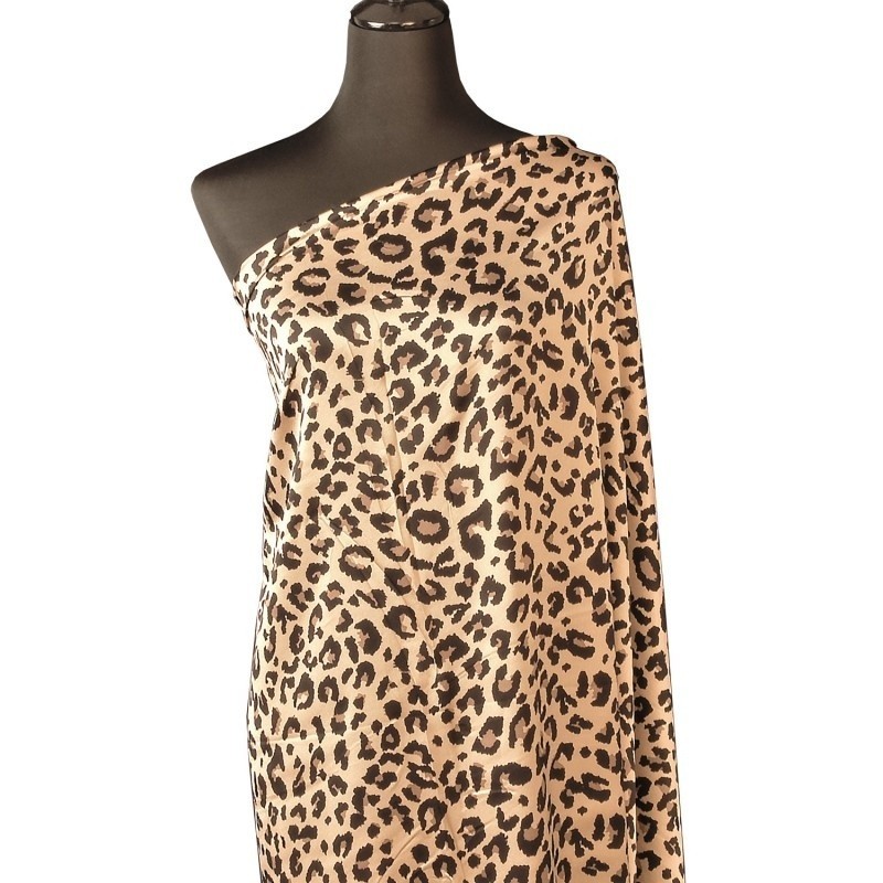 Tissu satin crêpe au motif léopard noir, alliant une surface satinée élégante à un toucher légèrement crêpé. Léger et fluide (100 g/m²), il offre un joli tombé et une agréable douceur sur la peau. Son aspect souple et sa finesse en font un choix idéal pour la réalisation de doublures, tout en apportant une touche originale et raffinée aux créations. Convient également pour des vêtements légers tels que blouses, robes ou jupes fluides.