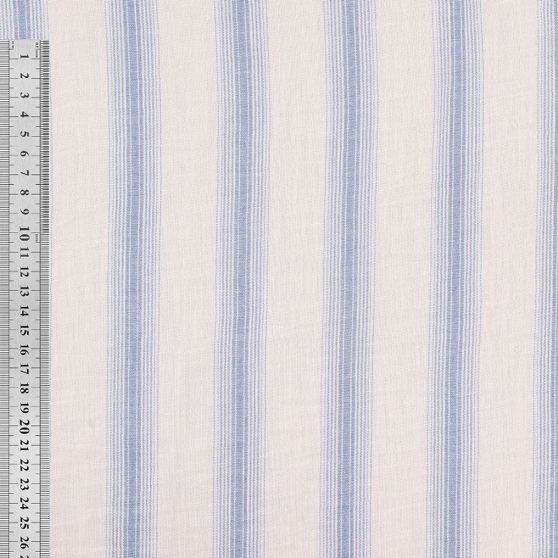 Cette étamine tissé-teint se distingue par sa légèreté et sa main souple. Ce tissu au tombé aérien est idéal pour les vêtements estivaux. Le motif multi rayé ciel, obtenu par un tissage teint fil, offre un rendu subtil et élégant, avec une excellente tenue des couleurs et une grande durabilité dans le temps. Les rayures régulières structurent le tissu tout en conservant une esthétique légère et contemporaine. Polyvalente, cette étamine convient parfaitement à la réalisation de chemisiers, robes légères, tuniques, voiles, ou détails de mode nécessitant finesse