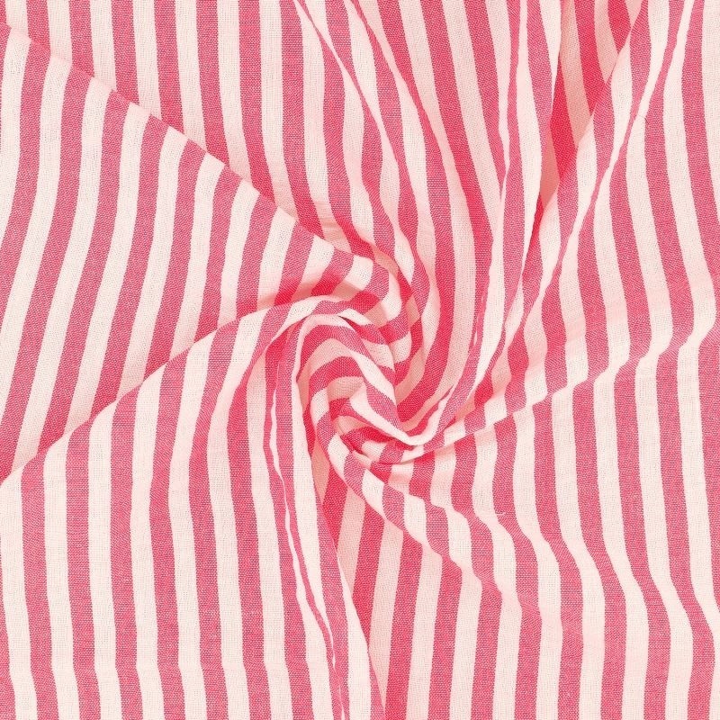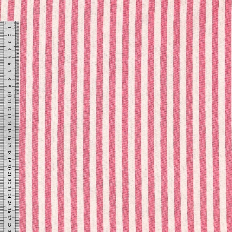 Cette étamine tissé-teint se distingue par sa légèreté et sa main souple. Ce tissu au tombé aérien est idéal pour les vêtements estivaux. Le motif à fines rayures coloris fuchsia, obtenu par un tissage teint fil, offre un rendu subtil et élégant, avec une excellente tenue des couleurs et une grande durabilité dans le temps. Les rayures régulières structurent le tissu tout en conservant une esthétique légère et contemporaine. Polyvalente, cette étamine convient parfaitement à la réalisation de chemisiers, robes légères, tuniques, voiles, ou détails de mode nécessitant finesse