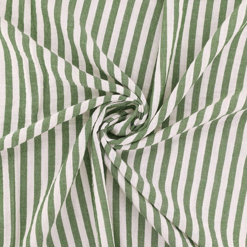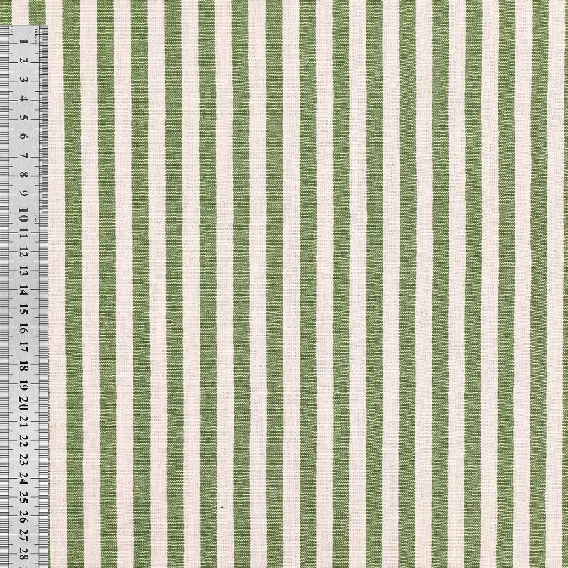 Cette étamine tissé-teint se distingue par sa légèreté et sa main souple. Ce tissu au tombé aérien est idéal pour les vêtements estivaux. Le motif à fines rayures coloris vert nil, obtenu par un tissage teint fil, offre un rendu subtil et élégant, avec une excellente tenue des couleurs et une grande durabilité dans le temps. Les rayures régulières structurent le tissu tout en conservant une esthétique légère et contemporaine. Polyvalente, cette étamine convient parfaitement à la réalisation de chemisiers, robes légères, tuniques, voiles, ou détails de mode nécessitant finesse