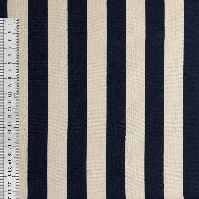 Les rayures coloris marine apportent une touche graphique et intemporelle, parfaite pour des pièces modernes ou d’inspiration estivale. Agréable au toucher et respirant, ce tissu convient particulièrement aux vêtements portés à même la peau.