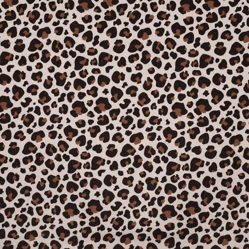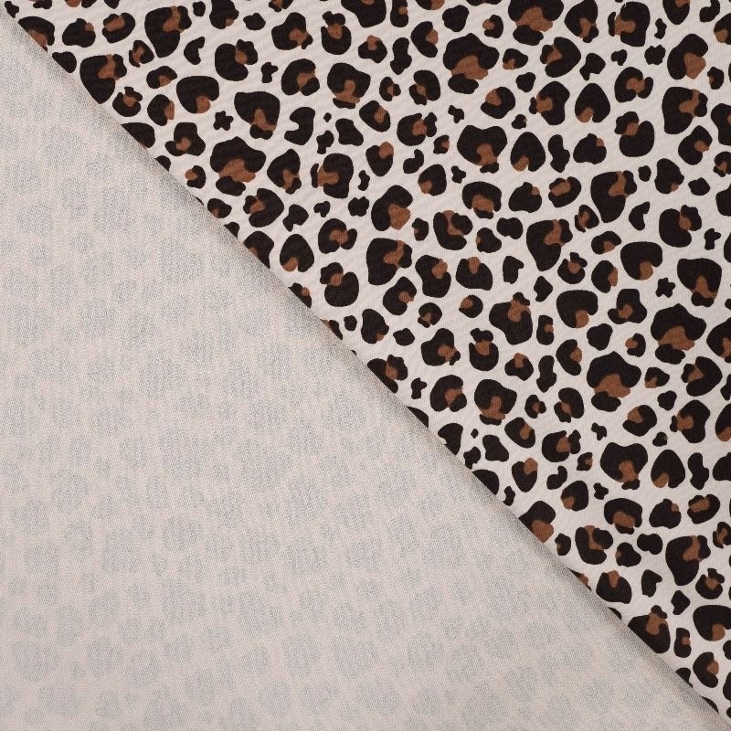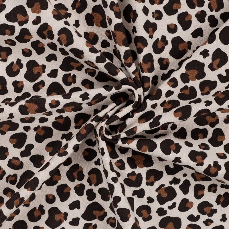 Ce tissu sweat french terry avec son imprimé léopard caramel peut être utilisé pour la confection de vêtements confortables comme des sweats, des vestes ou encore des robes.