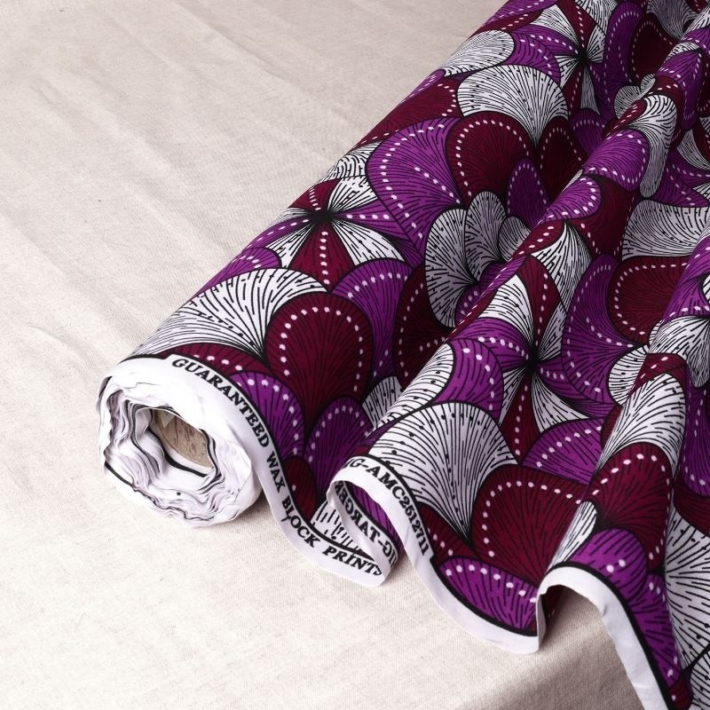 Le tissu Wax 100% polyester imprimé d'un motif prune est idéal pour le vestimentaire ou en déco. Vous pouvez également utiliser ce tissu pour la confection de sacs ou de pochettes. On aime son toucher doux et sa belle tenue.