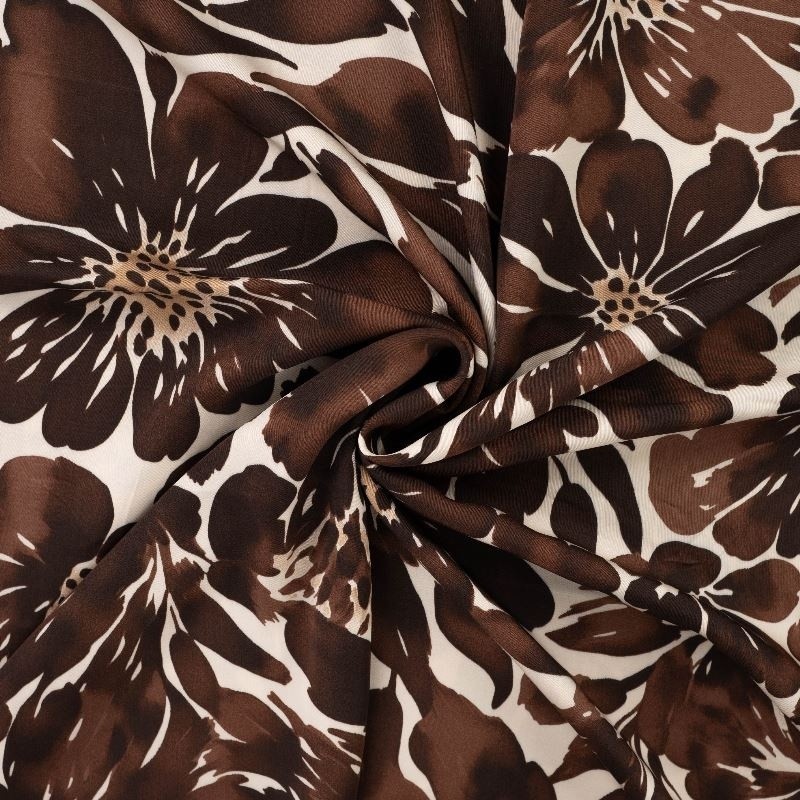 Tissu Satin Viscose Imprimé Fleurs Marron