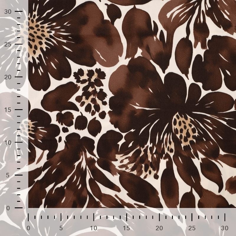 Ce tissu viscose avec un motif floral coloris marron à l'aspect satiné convient pour la confection de jupes, de robes ou encore de pantalons.