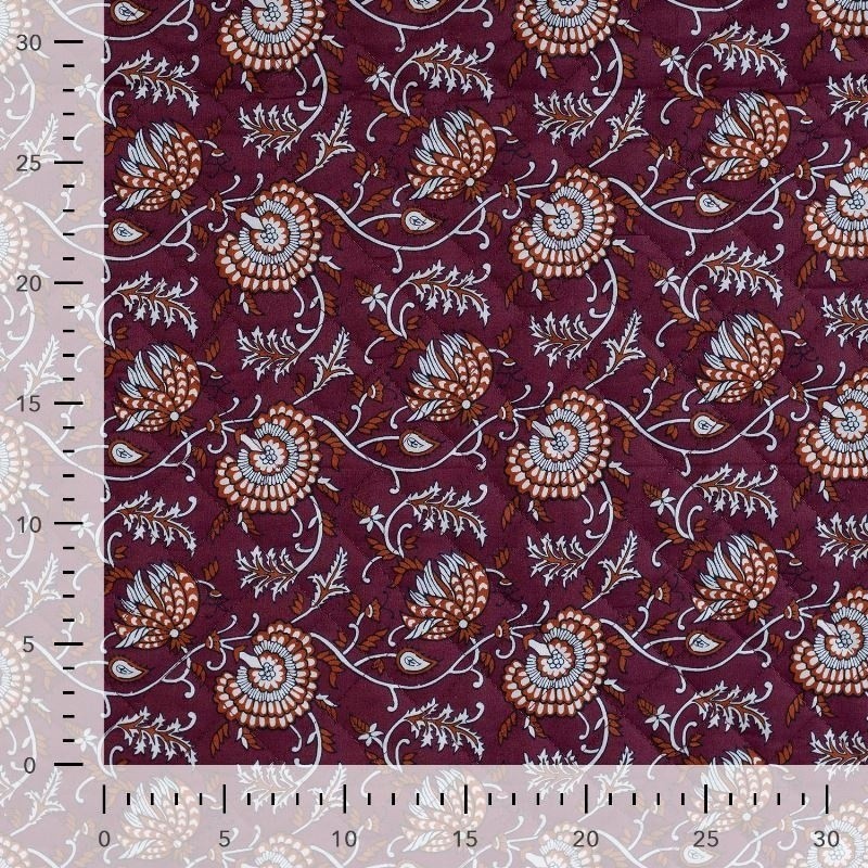 Découvrez ce tissu coton matelassé 100% coton double face, orné d'un magnifique motif floral coloris cognac. Ce matelassé apporte de l'authenticité et de l'élégance à vos projets de couture décoration intérieure, ou créations vestimentaires...