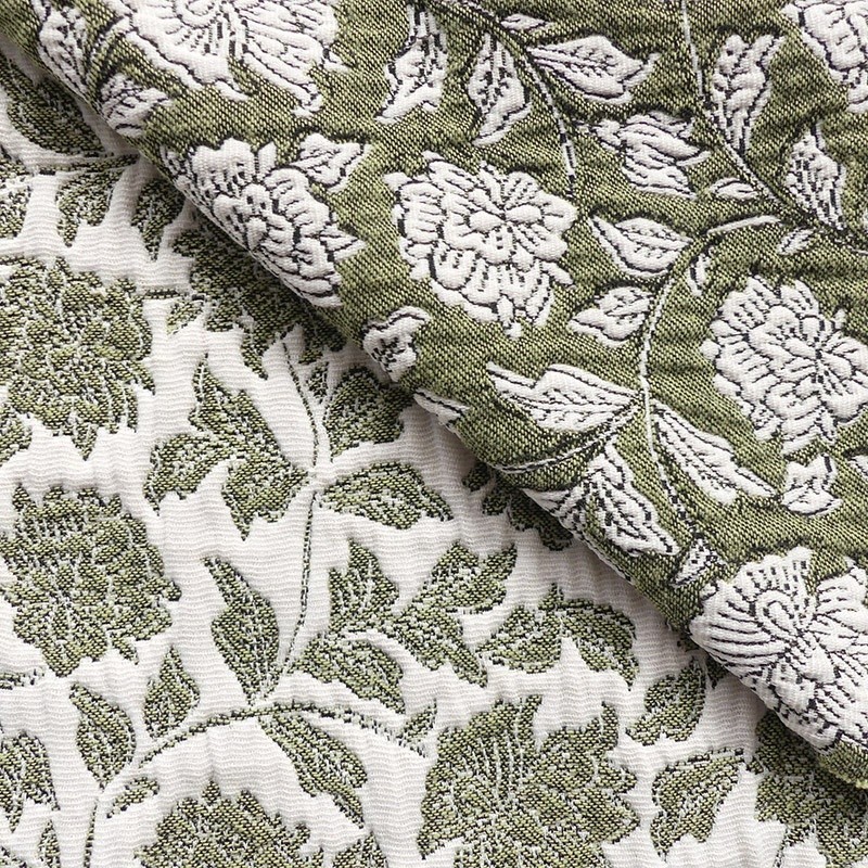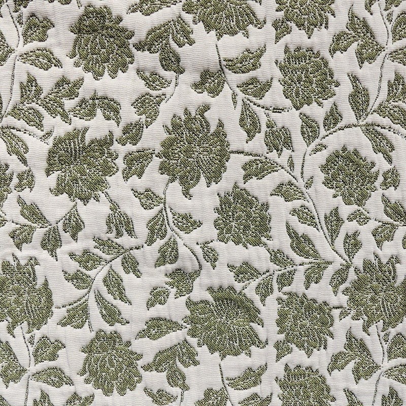 Le coloris kaki chaleureux apporte une touche de modernité à l’ensemble. Les fleurs, finement dessinées dans le tissage jacquard, offrent du relief et une belle profondeur visuelle.