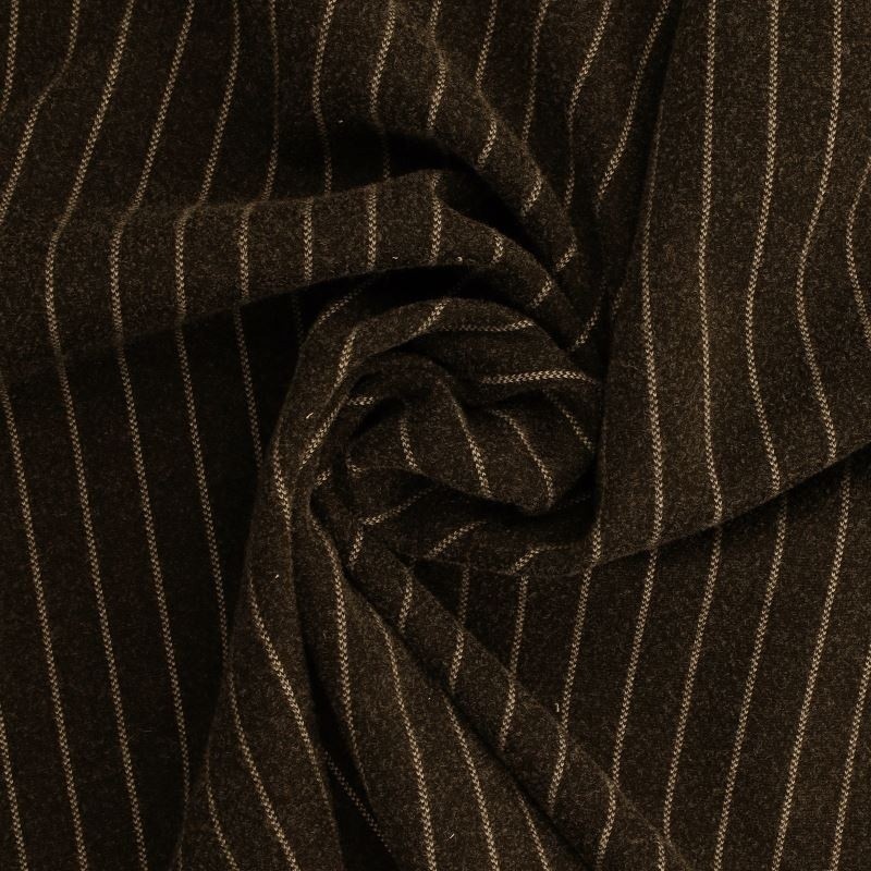 Ce tissu Borsalino rayé chocolat est une matière élégante et polyvalente, idéale pour la confection de vêtements structurés et confortables. Son motif à rayures apporte une touche classique et raffinée, parfaite pour des créations à la fois modernes et intemporelles.