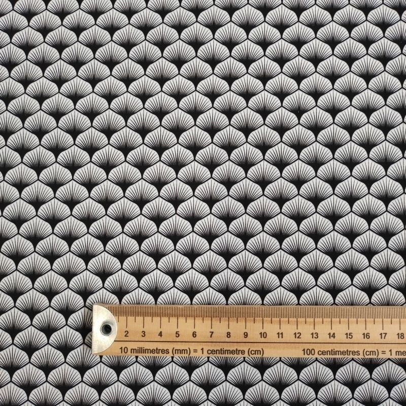 Son motif éventail, délicat et rythmé, apporte du caractère à vos réalisations. Décliné dans un coloris noir et blanc profond, il s’intègre aussi bien dans des univers modernes que plus classiques.