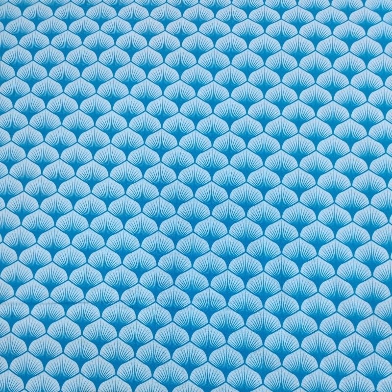 Tissu Popeline Eventails Bleu Turquoise