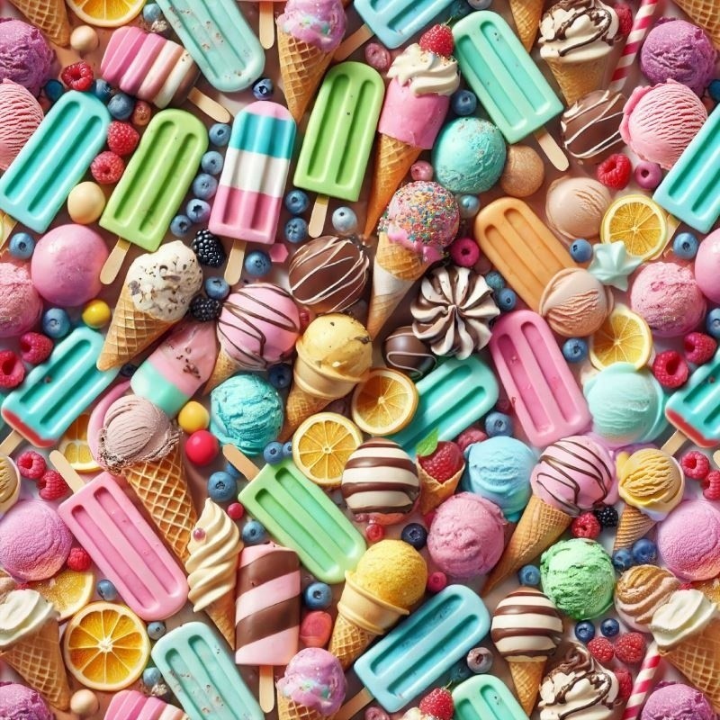 Ce tissu popeline 100% coton imprimé de glaces multicolores est à la fluide et souple, il conviendra parfaitement pour la réalisation d'adorables vêtements et accessoires pour les gourmands.