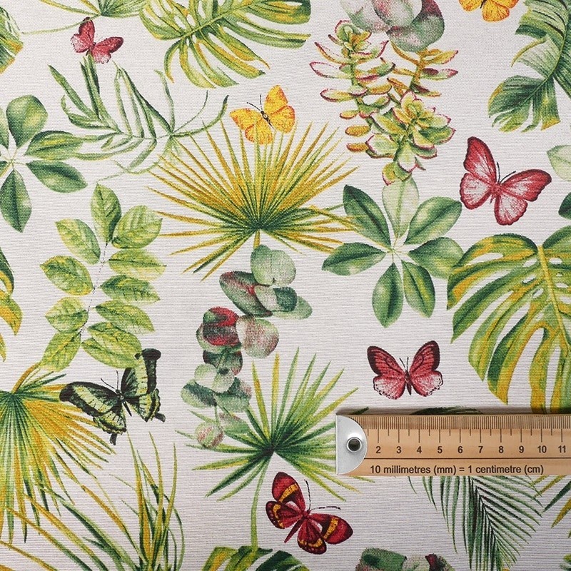 Ce tissu imprimé Iguana apportera une touche de fantaisie à vos créations. On aime son motif feuille et papillon. Ce tissu pourra être utilisé pour la réalisation de vos accessoires, pour vos projets déco comme la confection de rideaux et de coussins.