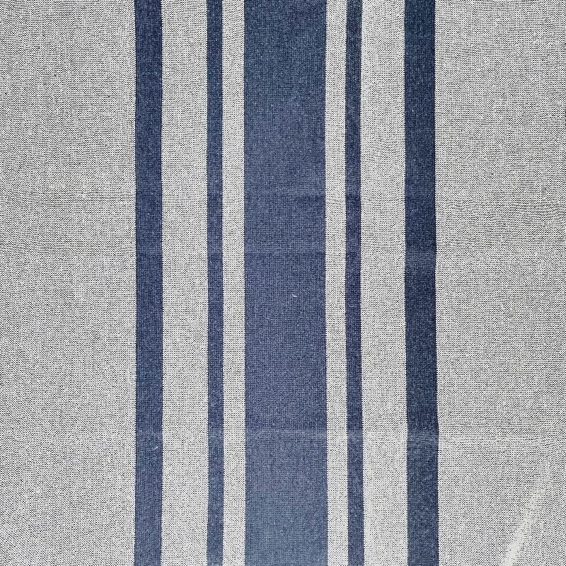 Parfait pour réaliser du linge de table, des coussins ou ajouter une touche de charme à votre décoration intérieure, ce tissu Bernadette 100% coton aux motifs rayures bayadères couleur denim sur fond naturel allie qualité et esthétique tout en offrant un rendu élégant et chaleureux.
