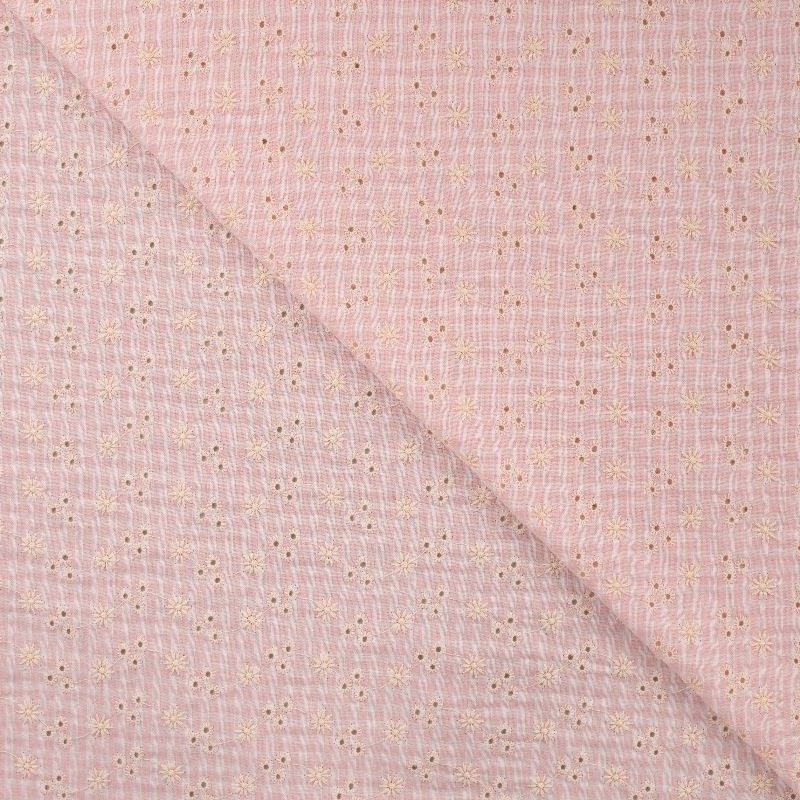 Ce tissu seersucker rose avec son aspect gaufré et ses broderies sera parfait pour la confection de vêtements. Ce motif apporte une touche élégante et intemporelle, il peut être utilisé pour des chemises, des robes, des costumes d’été et des vêtements pour enfants. Son entretien est facile, et son aspect naturellement froissé évite le besoin de repassage.