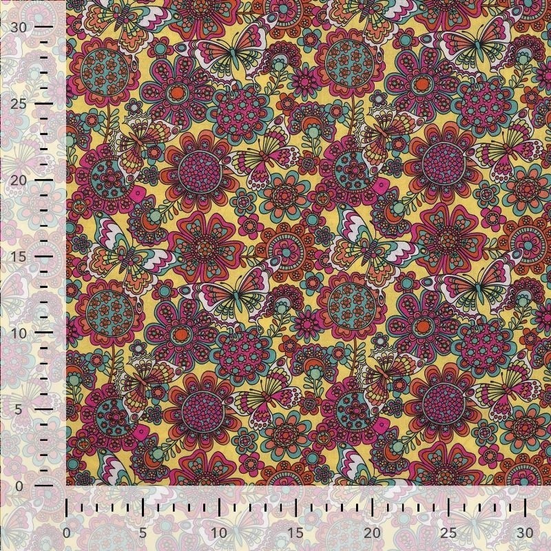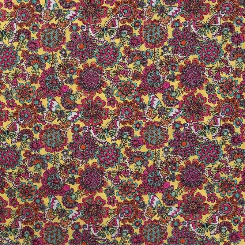 Tissu Voile de Coton Imprimé Papillon Jaune