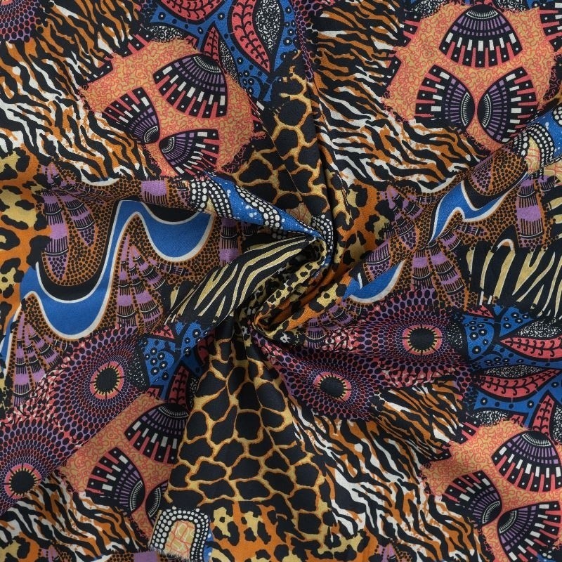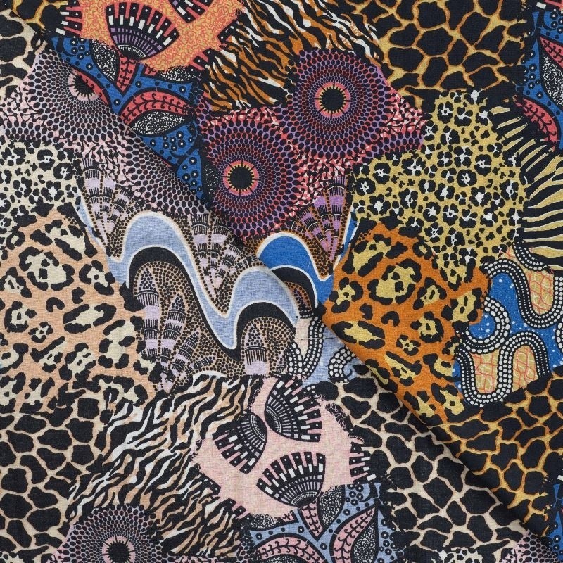 Le voile de coton est une matière agréable à porter car elle est douce et légère. Ce tissu imprimé Africa bleu peut-être utilisé pour la confection de vêtements légers comme des chemisiers ou pour des robes à doubler.