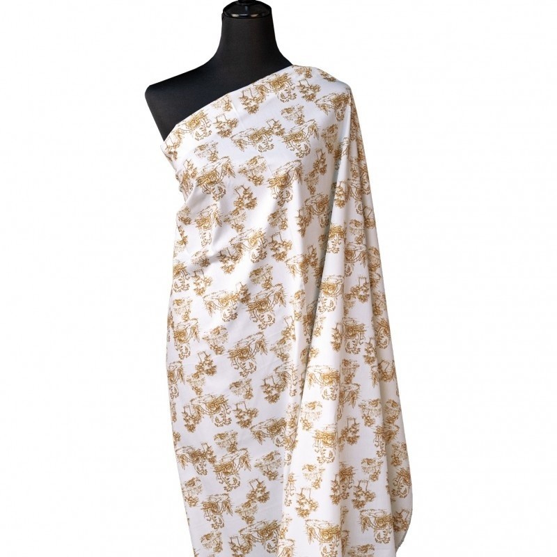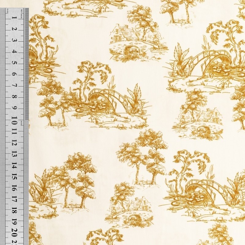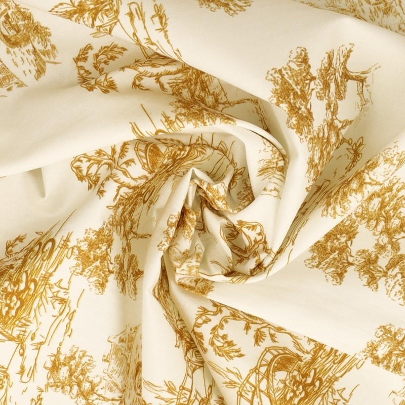 Apportez une touche d’élégance intemporelle à vos créations avec cette superbe popeline 100% coton ornée d’un motif Toile de Jouy jaune. Inspiré des décors classiques français, ce tissu séduit par ses illustrations raffinées et son style délicatement rétro.