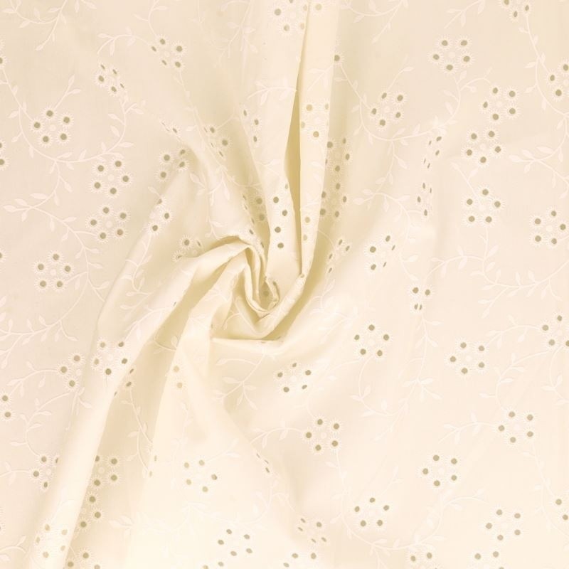 Tissu Popeline Floquée Esprit Broderie Blanc
